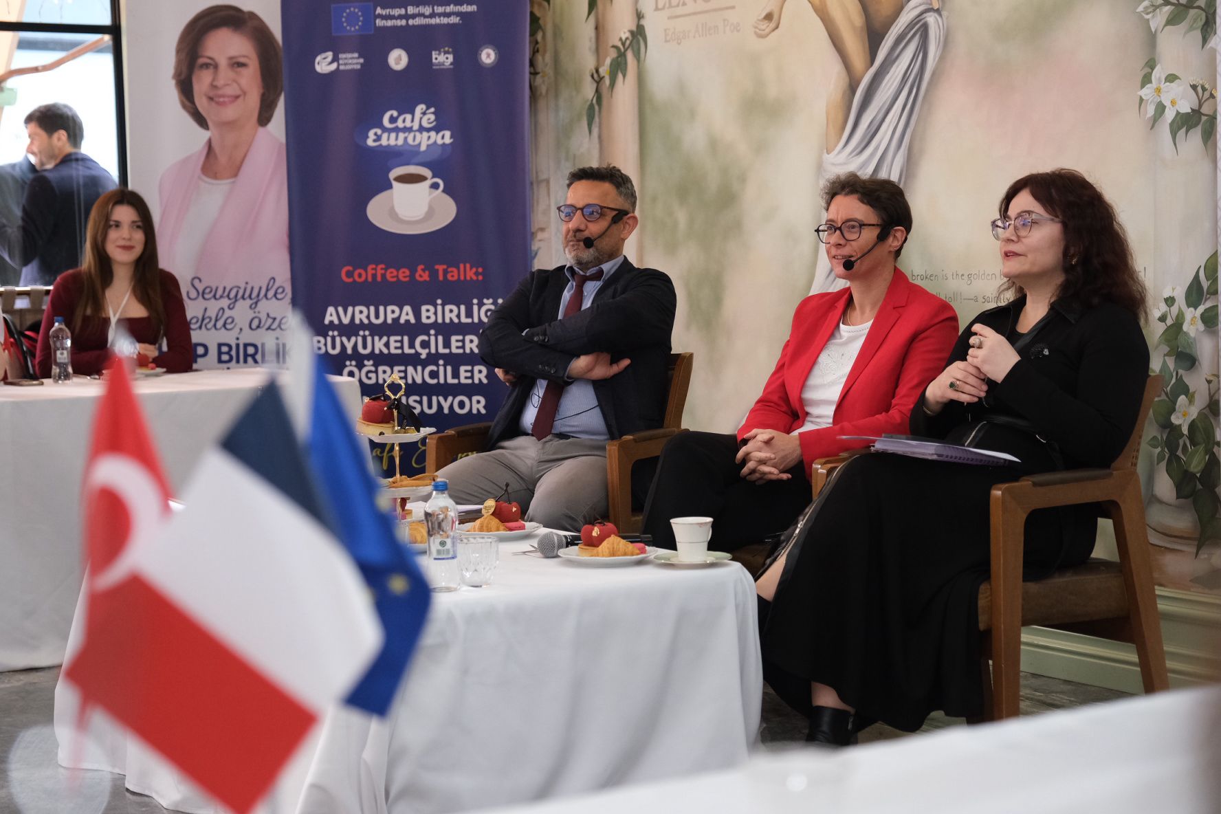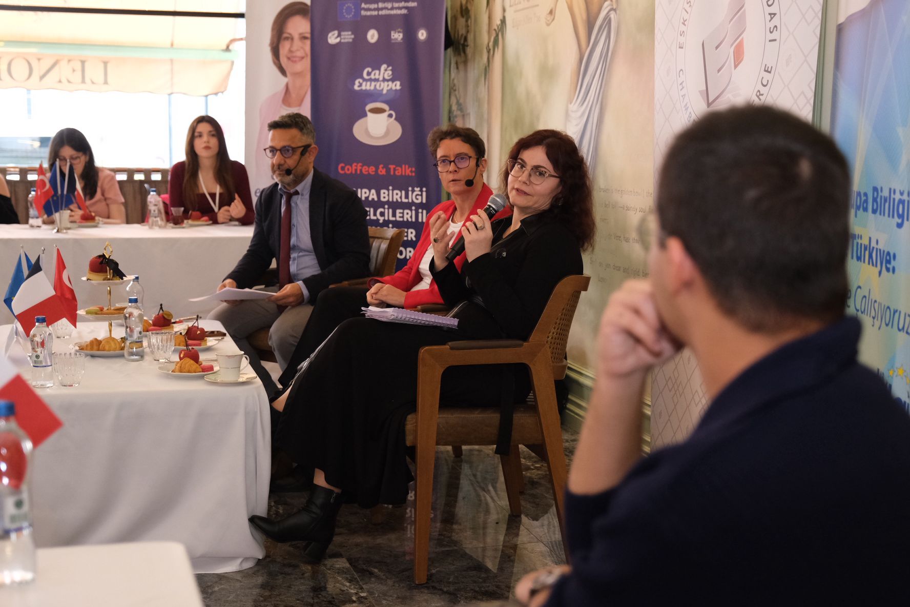 Eskişehir Ticaret Odası AB Bilgi Merkezi ve Eskişehir Büyükşehir Belediyesi Gençlik Merkezi iş birliğiyle düzenlenen dördüncü Café Europa etkinliği, Fransa Cumhuriyeti Türkiye Büyükelçisi Isabelle Dumont’un katılımıyla gerçekleştirildi. Etkinlik, şehir merkezinde bir cafede kahve eşliğinde samimi ve interaktif bir sohbet ortamında gerçekleşerek, Fransa ve Avrupa’nın gençlik politikaları, kültürel iş birliği olanakları ve yaratıcılık perspektiflerini Türkiye’den gençlerle buluşturan kapsamlı bir platform sundu.