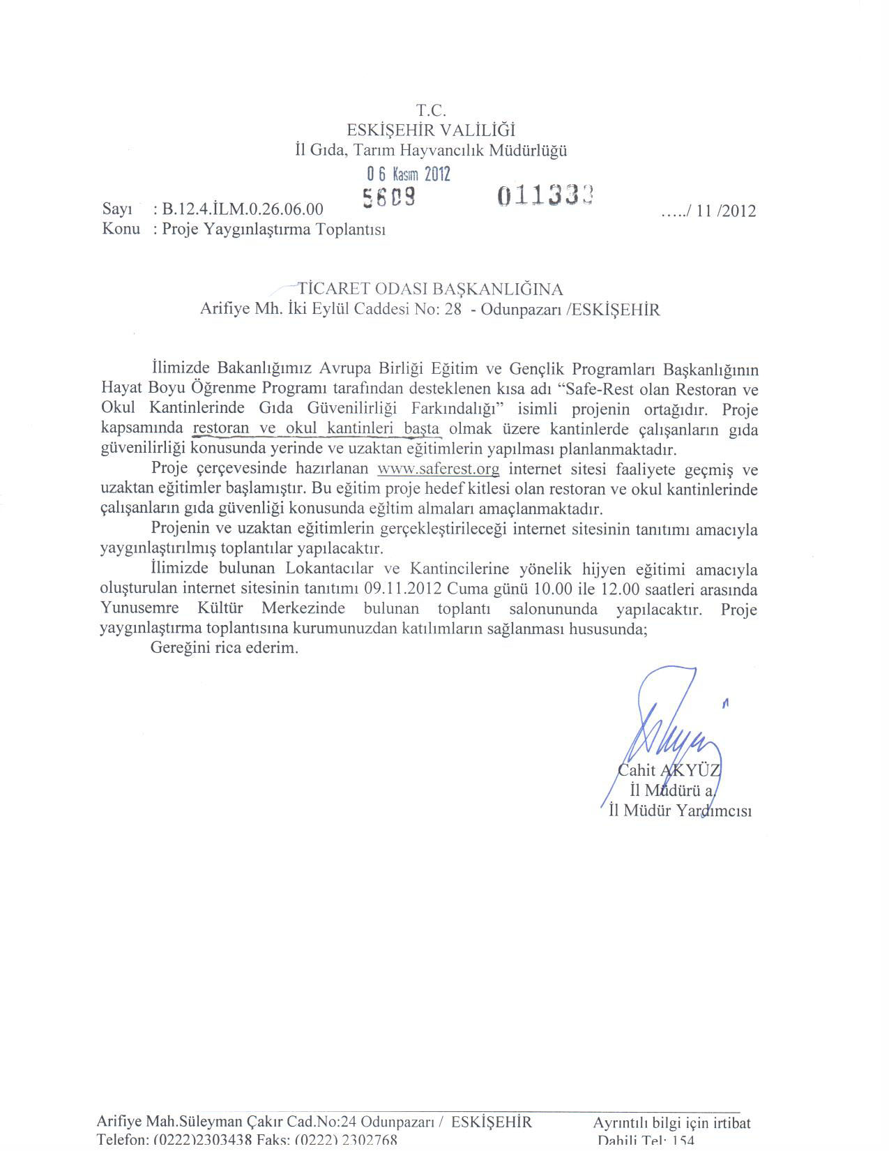İL GIDA, TARIM HAYVANCILIK MÜDÜRLÜĞÜNÜN DÜZENLEMİŞ OLDUĞU LOKANTA VE KANTİN İŞLETMELERİNE YÖNELİK TOPLANTI HK.