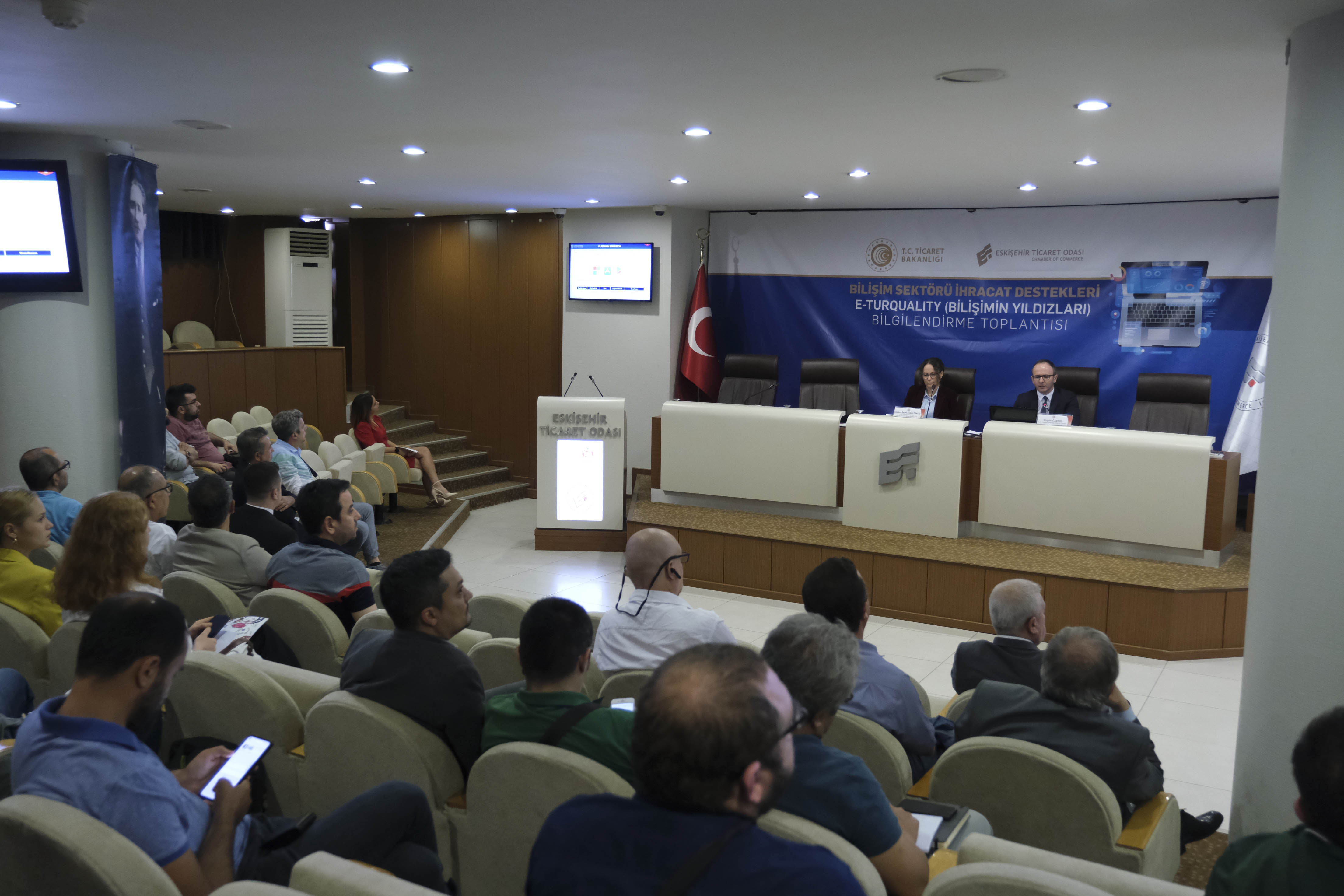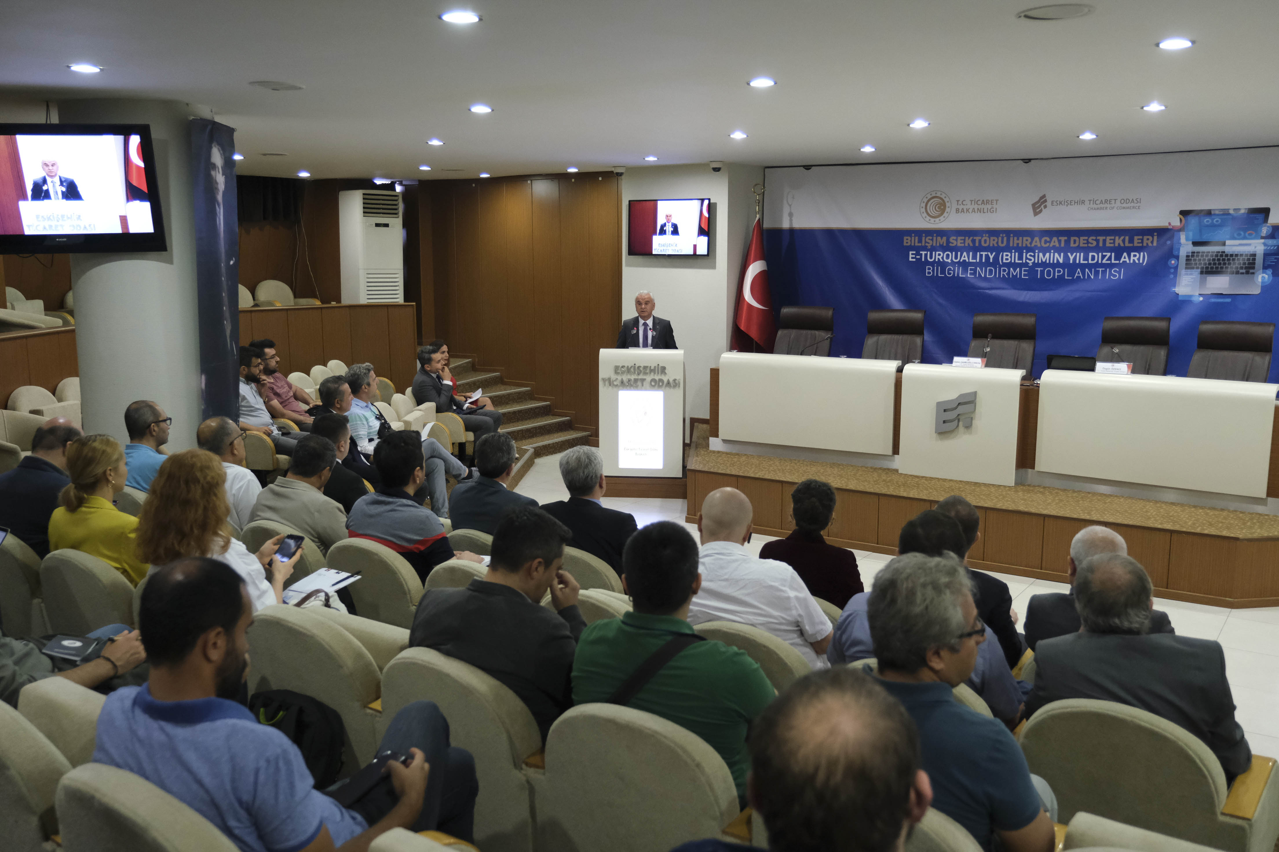 Eskişehir Ticaret Odası, yazılım ve bilgi teknolojileri alanında faaliyet gösteren firmalara destek olmak amacıyla gerçekleştirdiği faaliyetlere bir yenisini daha ekledi. E-Turquality (Bilişimin Yıldızları) programı Eskişehir Ticaret Odası’nda tanıtıldı. Ticaret Bakanlığı tarafından ülkemizin bilişim sektörü ihracatının arttırılması amacıyla hazırlanan E-Turquality (Bilişimin Yıldızları) programının tanıtım toplantısı sektördeki firmaların katılımıyla ETO’da gerçekleşti. Toplantının öncesinde açılış konuşması yapan ETO Başkanı Metin Güler, Turquality Programı’nın Eskişehir’in markası Sarar’ın dünyaya açılmasına katkı sağladığını belirterek, E-Turquality programının da bilişim sektöründeki firmalara çok yönlü teşvik ve destek sağladığını kaydetti. Eskişehir bilişim ve yazılım sektöründeki markalarının küresel ölçeğe ulaşabilmesi için çaba gösterdiklerini kaydeden Güler, ETO üyelerinin de bu desteklerden yararlanması için çalıştıklarını söyledi. Bilişim ve yazılım sektörünün katma değerinin çok yüksek olduğunu belirten ETO Başkanı Metin Güler, Eskişehir’in bu alanda da adını duyurabilecek potansiyele sahip olduğunu dile getirdi. Yeni bacasız sanayi: Bilgi ve iletişim teknolojileri Toplantıda konuşan Ticaret Bakanlığı Uluslararası Hizmet Ticareti Genel Müdür Yardımcısı Çiğdem Şamiloğlu Erkoç, E-Turquality programının kısa bir süre önce başladığını belirterek, program mevzuatın iş dünyasının istekleri ve beklentileri doğrultusunda hazırlandığını söyledi. Ticaret Bakanlığı’nın öncelikli amacının ihracatı artırmak olduğunu ve katma değeri yüksek olan ürünlerin ihracatına da çok önem verdiğini belirten Erkoç, bilgi ve iletişim teknolojileri ihracatına da bu amaç doğrultusunda destek olduklarını ifade etti. Bilgi ve iletişim teknolojilerinin yeni bacasız sanayi olarak nitelendirildiğini belirten Erkoç, Türkiye’nin 2.5 milyar dolar olan bilgi ve iletişim teknolojileri alanındaki ihracatını geliştirmeyi hedeflediklerini kaydetti. Firmalara E-Turquality destekleri anlatıldı Ticaret Uzmanı Özgür Özenci toplantıda E-Turquality (Bilişimin Yıldızları) Programı kapsamında verilen destekler hakkında sunum yaptı. E-Turquality (Bilişimin Yıldızları) Programı kapsamında, yazılımdan dijital oyunlara yapay zekadan siber güvenliğe kadar çok geniş bir yelpazede faaliyet gösteren firmaların yararlanabileceğini belirten Özenci, sektördeki firmaların program kapsamındaki desteklerden hangi koşullar altında yararlanabileceğini anlattı.