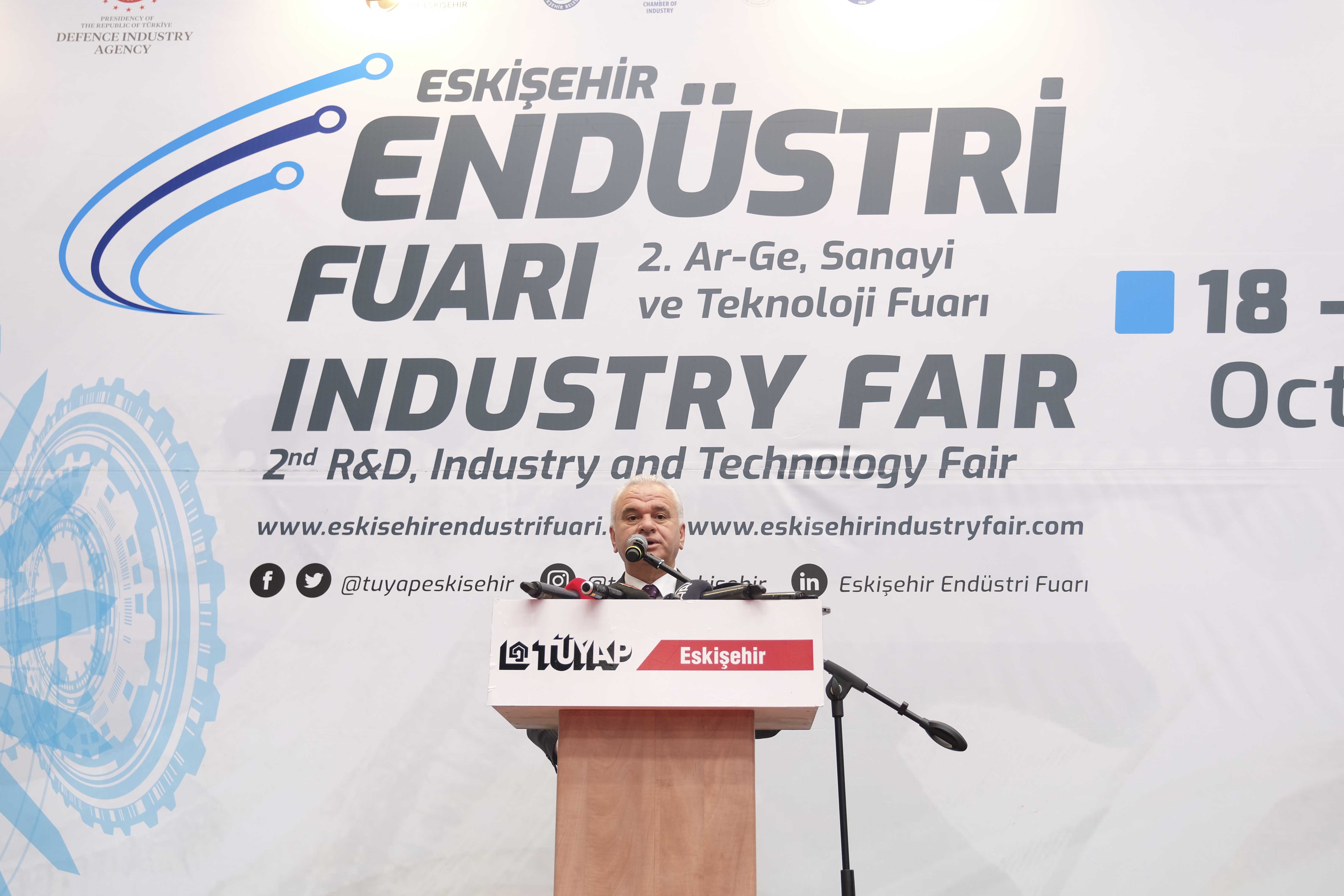 Savunma sanayinin ve endüstrinin öncü firmaları ETO TÜYAP Fuar Merkezi’nin ev sahipliğinde ikinci kez buluştu. Türkiye’nin önde gelen havacılık, savunma sanayi ve endüstri devlerinin buluşma noktası olan Eskişehir Endüstri Fuarı 18 Ekim Salı günü ikinci kez kapılarını araladı. Savunma Sanayi Başkanlığı’nın desteğiyle ETO TÜYAP Fuar Merkezi’nin ev sahipliğinde gerçekleşen fuarda Aselsan, Havelsan, İşbir Elektrik, Roketsan, STM Savunma, TEI-TUSAŞ Motor Sanayii A.Ş, TUSAŞ Türk Havacılık ve Uzay Sanayii A.Ş. gibi Türkiye’nin öncü firmaları stant açtı. Fuarın açılış törenine Cumhurbaşkanlığı Savunma Sanayi Başkan Yardımcısı Harun Çelik, Vali Yardımcısı Salih Altun, Eskişehir Büyükşehir Belediyesi Başkan Vekili Hasan Ünal, Eskişehir Ticaret Odası Başkanı Metin Güler, Eskişehir Organize Sanayi Bölgesi Başkanı Nadir Küpeli, Eskişehir Sanayi Odası Başkanı Celalettin Kesikbaş, TÜYAP Anadolu Fuarları A.Ş. Genel Müdürü İlhan Ersözlü, protokol, yabancı misyon temsilcileri katıldı. Savunma Sanayi Başkanlığı’nın fuara olan desteği artıyor Törende konuşan Cumhurbaşkanlığı Savunma Sanayi Başkan Yardımcısı Harun Çelik, Savunma Sanayi Başkanlığı’nın bu yıl düzenlenen endüstri fuarında çok daha güçlü bir katılımla yer aldığını belirterek, fuar kapsamında gerçekleştirilecek olan ikili iş görüşmelerine de geçtiğimiz yıla göre daha çok katılım beklediklerini kaydetti. Savunma Sanayi Başkanlığı olarak yetişmiş insan kaynağına çok büyük önem verdiklerini belirten Çelik, Eskişehir Endüstri Fuarına da üniversiteli gençlerin oluşturduğu 16 kulübün katıldığını söyledi. Eskişehir Büyükşehir Belediyesi Başkan Vekili Hasan Ünal ise, katma değeri yüksek ürünlerin imal etmenin Türkiye’nin geleceği açısından çok önemli olduğunu belirterek, fuara katılan tüm firmalara teşekkür etti. Güler ikili iş görüşmelerine dikkat çekti Törende konuşan ETO Başkanı Metin Güler, Eskişehir Endüstri Fuarı’nın ikinci kez kapılarını araladığını belirterek, fuara toplam 14 ülkeden 157 firma ve temsilciliğinin katıldığını söyledi. ABD, Japonya, Almanya, Çin, Fransa, İngiltere gibi ülkelerden de temsilciler bulunduğuna dikkat çeken Güler, fuarla birlikte eş zamanlı gerçekleşen ikili iş görüşmeleri sayesinde Eskişehir’deki firmaların savunma sanayinin önemli firmalarıyla bir araya gelme ve işbirliği için zemin oluşturma imkanı bulduğunu dile getirdi. Fuara bu yıl 25 bin ziyaretçi bekleniyor Fuarların düzenlemesine katkıda bulunan kurum ve kuruluşlara teşekkür eden TÜYAP Anadolu Fuarları A.Ş. Genel Müdürü İlhan Ersözlü, fuarda ülkemizin ve Eskişehir’in değerli firmalarının Eskişehir Endüstri Fuarı’nda bir araya geldiğini söyledi. Geçtiğimiz yıl fuarı 20 bin civarında kişinin ziyaret ettiğini belirten Ersözlü, bu yıl ikincisi gerçekleştirilen Eskişehir Endüstri Fuarı'na 25 bin civarında ziyaretçi beklediklerini kaydetti. Sanayicilerden yüksek katma değer vurgusu Eskişehir Organize Sanayi Bölgesi Başkanı Nadir Küpeli, Eskişehirli sanayiciler için endüstri fuarının ayrı bir önem taşıdığını belirterek, fuarın son yıllarda yüksek sesle dile getirilen yüksek katma değerli üretim ve ihracatın geliştirilmesine katkı sağlayacağını söyledi. Eskişehir Sanayi Odası Başkanı Celalettin Kesikbaş ise, ESO olarak 1000 üyeyle, 7 milyar Dolar’a yaklaşan ciro ve 4 milyar dolara yakın ihracatla yola devam ettiklerini söyledi. Kesikbaş ayrıca fuarın düzenlenmesinde emeği geçenlere teşekkür etti.