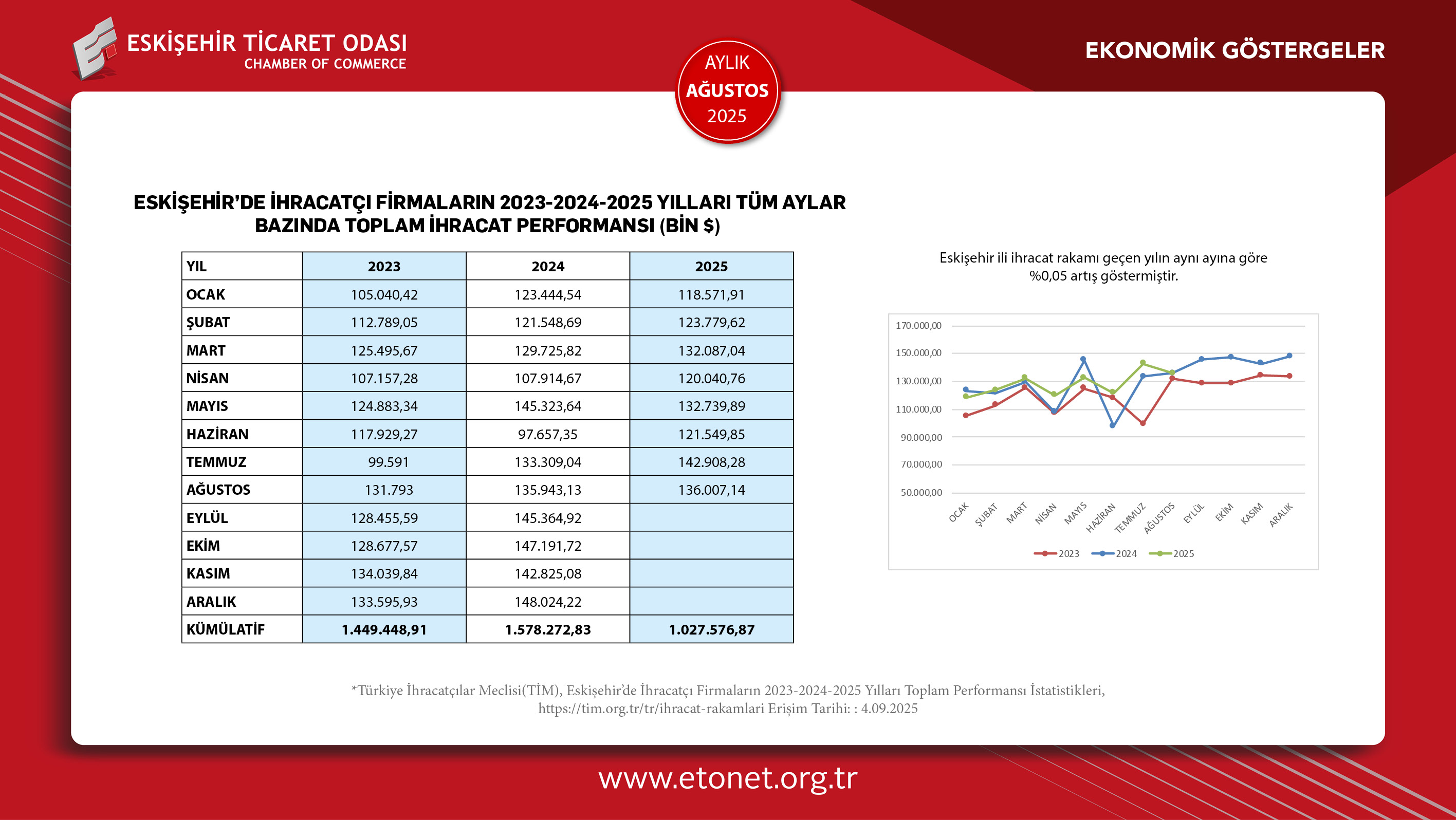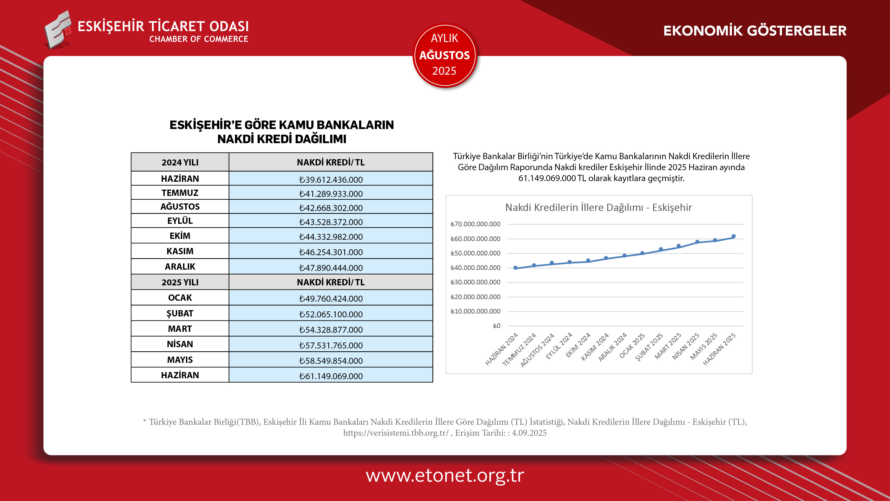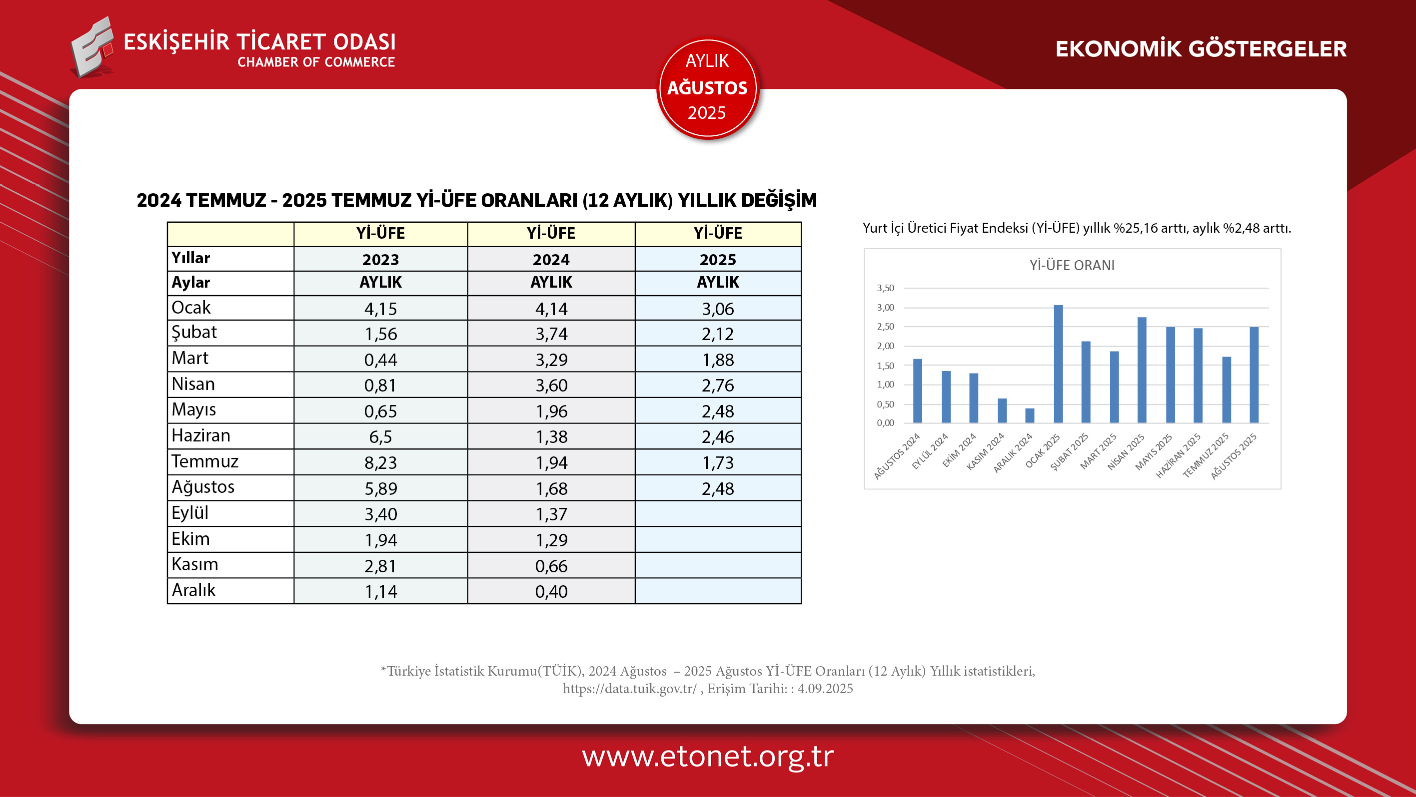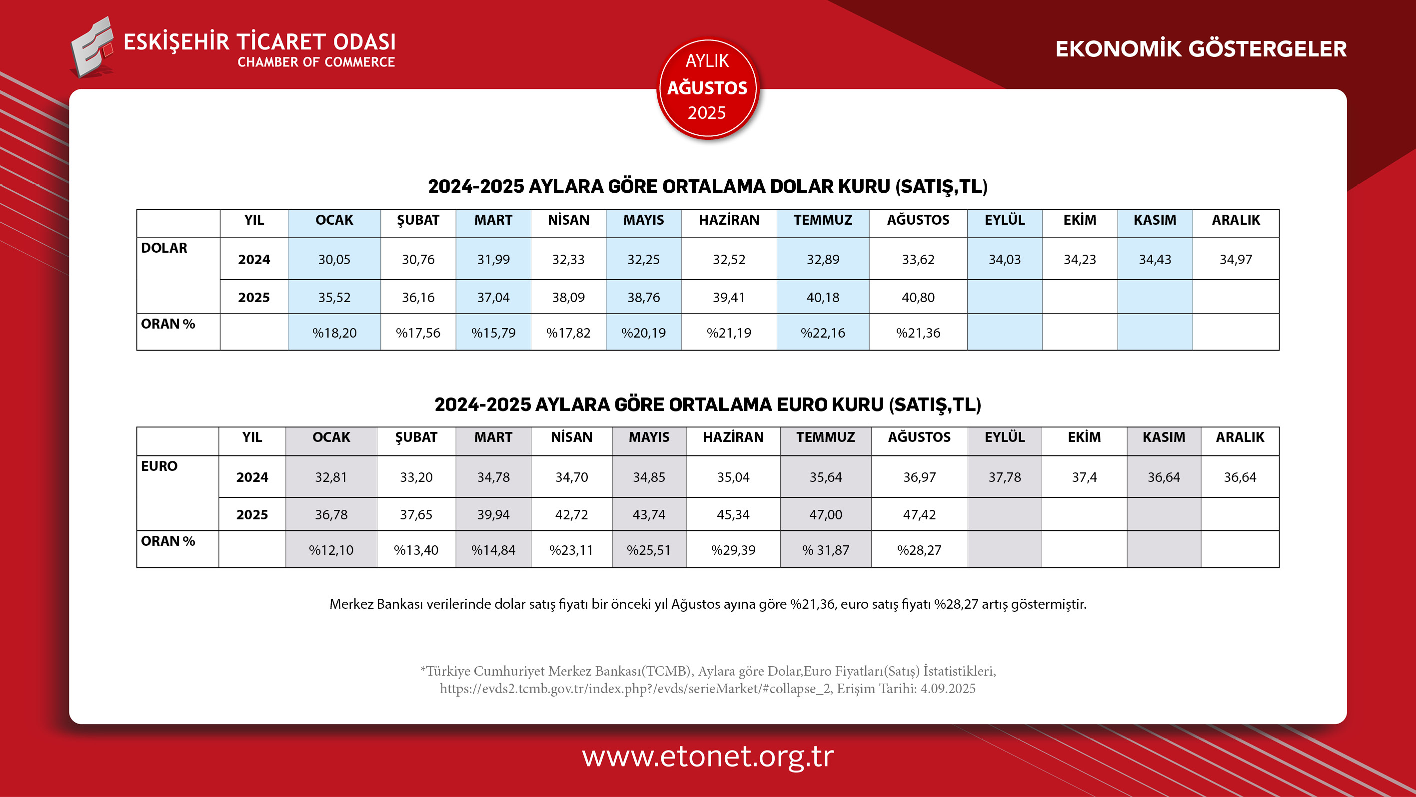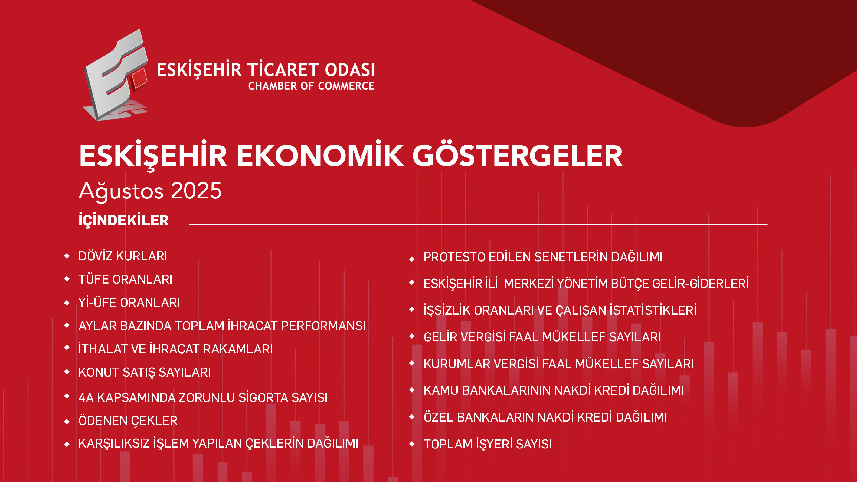 Eskişehir Ticaret Odası tarafından her ay düzenli olarak grafikler ve veriler eşliğinde hazırlanan, üyelerle ve kamuoyu ile paylaşılan Ekonomik Göstergeler Raporu’nun Ağustos sayısı yayınlandı.